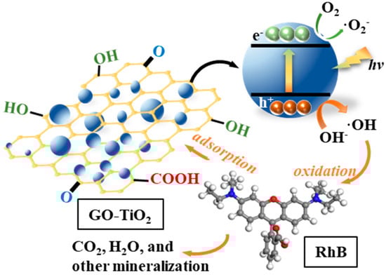 Possible photocatalytic mechanism of RhB degradation by GO/TiO2 photocatalysts.