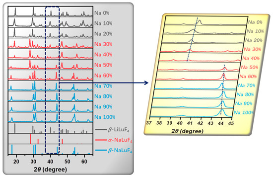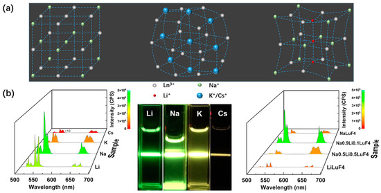 - Dou, Q.; Zhang, Y. Tuning of the Structure and Emission Spectra of Upconversion Nanocrystals by Alkali Ion Doping. Langmuir 2011, 27, 13236–13241. [Google Scholar] [CrossRef] [PubMed]