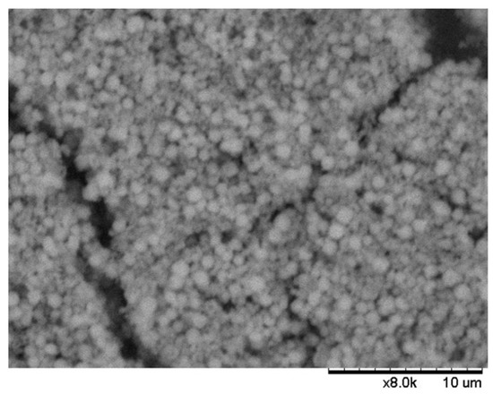 s-ZnHCF was synthesized as proposed in the literature [36]. Two solutions of 0.5 M K3Fe(CN)6 (80 mL) and 0.1 M ZnSO4 0.1 M (80 mL) were simultaneously introduced in 50 mL of ultrapure H2O at 60 °C under vigorous stirring, by dropping them at the speed of 2 mL/min. Then, the suspension was allowed to settle for 3 h. The yellow precipitate was filtered, washed with deionized water, and dried at 70 °C overnight, after which it changed color to green. S-ZnHCF was characterized by SEM, TEM, and XRD (Figure 2, Figure 3 and Figure 4).