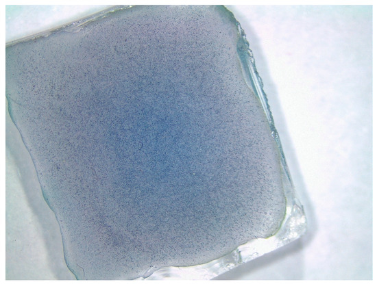 The deposition of both powders onto the FTO surface using the drop-casting technique produced a uniform layer, as confirmed by stereomicroscopy. Figure 5 illustrates the homogeneity of the s-ZnHCF layer.
