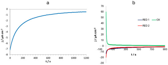 Finally, in all the cases, the resulting current rapidly decreased and asymptotically approached zero, indicating that the matrix vacant sites were progressively filled, with a more rapid filling occurring during the first 5 min of the reductive potential application.
