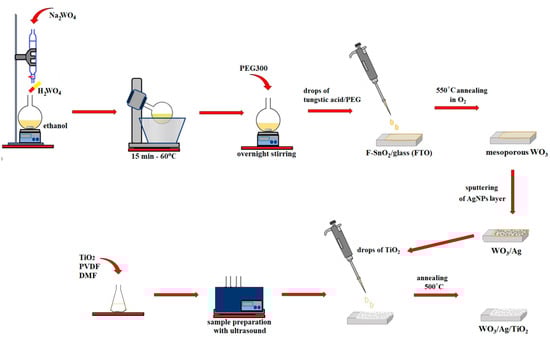 The consecutive steps involved in the WO3/Ag/TiO2 film preparation process are shown in Scheme 1.