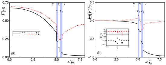 - Bergeret, F.; Volkov, A.F.; Efetov, K.B. Odd triplet superconductivity and related phenomena in superconductor-ferromagnet structures. Rev. Mod. Phys. 2005, 77, 1321. [Google Scholar] [CrossRef]