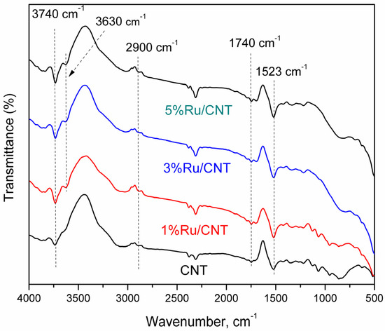 3.1.1. Ruthenium-Based MWCNT Samples