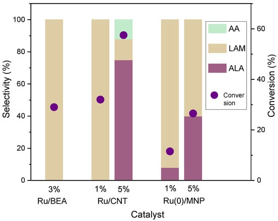 - Li, W.; Li, F.; Chen, J.; Betancourt, L.E.; Tu, C.; Liao, M.; Ning, X.; Zheng, J.; Li, R. Efficient and Sustainable Hydrogenation of Levulinic Acid to γ-Valerolactone in Aqueous Phase over Ru/MCM-49 Catalysts. Ind. Eng. Chem. Res. 2020, 59, 17338–17347. [Google Scholar] [CrossRef]
