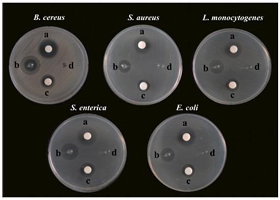 The inhibitory activity of SA-AgNNPs films against B. cereus, S. aureus, L. monocytogenes, S. enterica, and E. coli. was determined by the agar well diffusion method [33]. For bacterial inoculation, a sterile cotton swab was dipped in bacterial solution (107 CFU/mL) and evenly cultured on the Mueller–Hinton agar (MHA) plates. Prepared SA-AgNNPs films were cut into small pieces with a diameter of 6 mm, which were further placed onto the agar plate containing each bacteria mentioned above. Subsequently, the plates were incubated at 37 °C for 8 h. After that, the sizes of the inhibition zones were measured and calculated to evaluate the antibacterial activity of the SA-AgNNPs films. Tetracycline hydrochloride (TCH) was used as the positive control.