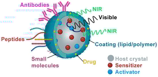 The most representative instance of this phenomenon is provided by UCNPs, which emit photoluminescence (PL) in both the visible and infrared (IR) regions upon being excited by IR light. The properties are favored by characteristics such as size, surface components, crystallinity, chemical composition, involved fluorophores, and the heterogeneity of electronic states among different components [27,47].