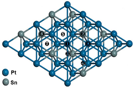 High-symmetry sites on Pt3Sn(111) are presented in Figure 1. The adsorption energies (Eads) were calculated as follows: [42,43]