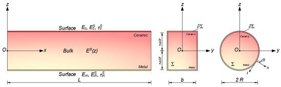 | B, S | Bulk and surface layers of FG material | Surface mass density of metal | |