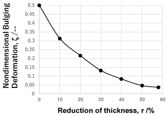 Variation in the nondimensional bulging deformation, ζ, with increasing reduction in thickness, r.