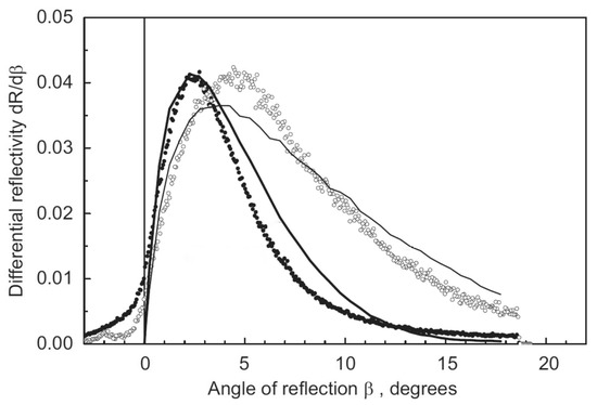In some cases, specular reflection is of key importance. For example, it is essential in neutron guides [47], which are used to extract neutrons from the reactor over considerable distances (sometimes reaching hundreds of meters) with minimal losses in the phase space. Neutrons are repeatedly reflected from the neutron guide walls at small angles, and any non-specular reflection leads to losses. In many other cases, the specularity of neutron reflection is not important, and only the reflectivity of the substances is important, like in the case of reflectors in nuclear reactors [48,49].