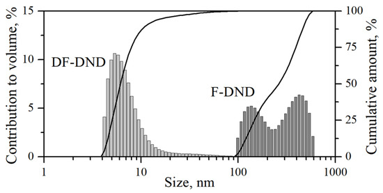 Size distribution of DNDs is provided by the producer (Ultradiamond, USA).