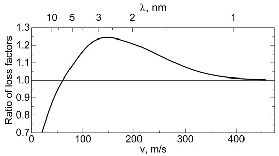 If the goal is the maximum probability, then one prefers particles of a size that provides the maximum transport cross-section , which depends both on the value of the scattering cross-section and on the mean cosine of the scattering angle . It is intuitively clear that this optimum lies in the range of dimensions on the order of the wavelength of the reflected neutrons, i.e., in the nanometer size range. On the one hand, a decrease in size leads to a sharp drop in the scattering cross-section, according to Expression (9) (the cross-section drops as ∼ for and ∼ for ). On the other hand, with an increasing particle size, the mean cosine of the scattering angle sharply decreases.