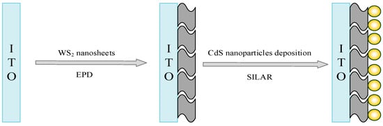 Schematic diagram of CdS/WS2/ITO fabricated via a coupling technique of EPD and SILAR methods.