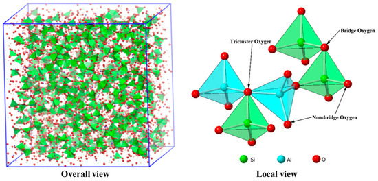 - Jiang, C.; Li, K.; Zhang, J.; Qin, Q.; Liu, Z.; Liang, W.; Sun, M.; Wang, Z. The effect of CaO (MgO) on the structure and properties of aluminosilicate system by molecular dynamics simulation. J. Mol. Liq. 2018, 268, 762–769. [Google Scholar] [CrossRef]