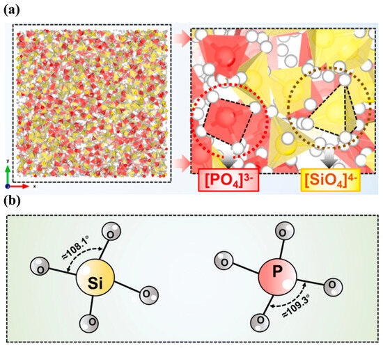 - Sun, H.; Yang, J.; Zhang, R.; Xu, L. Insight into the structure and transport properties of CaO-SiO2-P2O5 system during the phosphorus enrichment process: A molecular dynamics simulation. J. Non Cryst. Solids 2024, 627, 122818. [Google Scholar] [CrossRef]