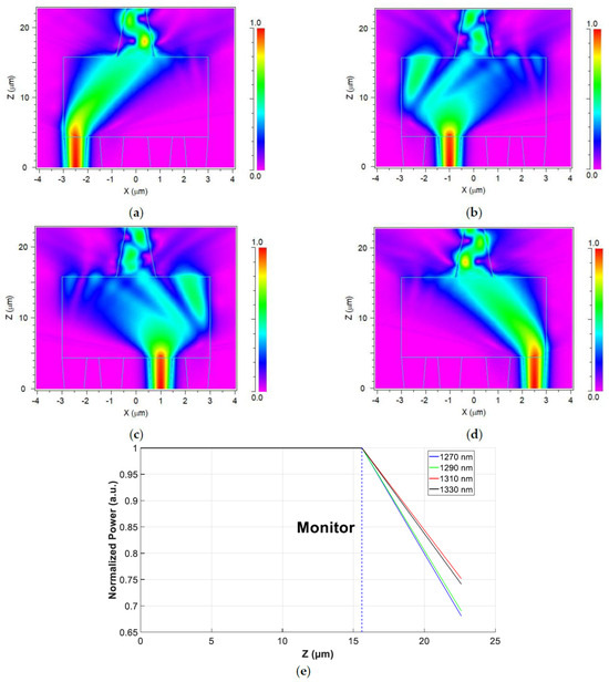 Figure 6e shows the propagation loss for each operated wavelength. The monitor was placed at the output port.