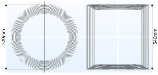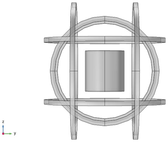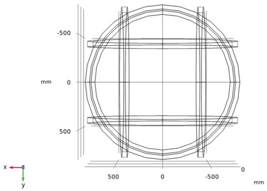 The passive magnetic shielding of magnetic sensitive components or modules is usually achieved through the use of a magnetic shielding barrel. A multi-layer magnetic shielding barrel structure was established by the COMSOL simulation tool, as shown in Figure 2. COMSOL uses finite element methods to solve electromagnetic fields in the simulation domain. Simulations used the three-dimensional MAXWELL equation as the basic model for simulation analysis and calculation, expressed as follows: