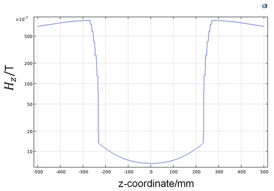 Magnetic field distribution for the geomagnetic magnetic field on the z-axis.