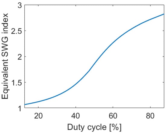 Synthesized equivalent refractive index as a function of SWG duty cycle, considering an SWG period of 400 nm.