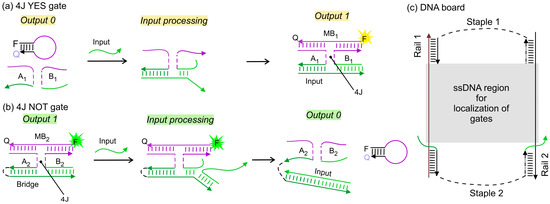 - Chatterjee, G.; Dalchau, N.; Muscat, R.A.; Phillips, A.; Seelig, G. A Spatially Localized Architecture for Fast and Modular DNA Computing. Nat. Nanotechnol. 2017, 12, 920–927. [Google Scholar] [CrossRef] [PubMed]