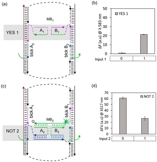 Bardales, A.C.; Vo, Q.; Kolpashchikov, D.M. Singleton {NOT} and Doubleton {YES; NOT} Gates Act as Functionally Complete Sets in DNA-Integrated Computational Circuits. Nanomaterials 2024, 14, 600. https://doi.org/10.3390/nano14070600