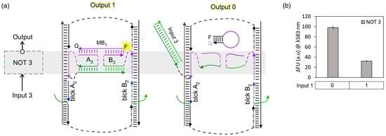 Chicago/Turabian StyleBardales, Andrea C., Quynh Vo, and Dmitry M. Kolpashchikov. 2024. "Singleton {NOT} and Doubleton {YES; NOT} Gates Act as Functionally Complete Sets in DNA-Integrated Computational Circuits" Nanomaterials 14, no. 7: 600. https://doi.org/10.3390/nano14070600