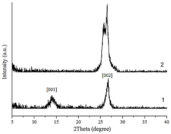 X-ray diffraction: 1—GO; 2—GO-HMDA.