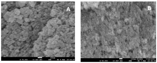 SEM micrographs of (A) CdS and (B) ZnO nanoparticles.