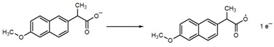 Scheme 2 shows the proposed mechanism of mobic, which involves proton-coupled electron transfer during oxidation. Scheme 3 represents the proposed electro-oxidation of naproxen. The products of both mobic and naproxen are suggested to adsorb to the sensor surface because the signals of both NSAIDs decreased in intensity with consecutive scanning without cleaning the electrode in between the consecutive scans.