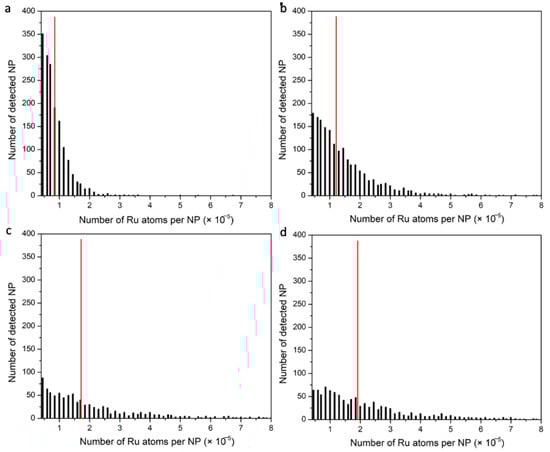 3.3. Per-Particle Metal Content of Ru-SiO2 NPs