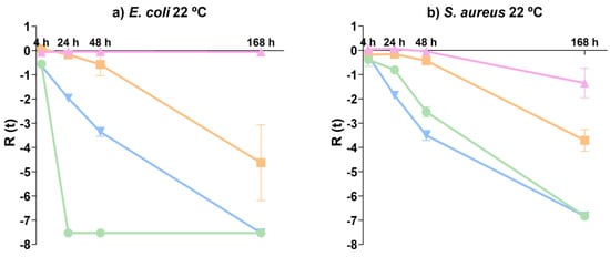 ) for (a) E. coli 22 °C and (b) S. aureus 22 °C.