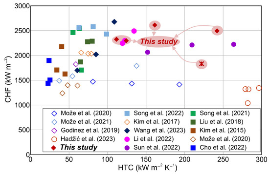 - Može, M.; Zupančič, M.; Golobič, I. Investigation of the Scatter in Reported Pool Boiling CHF Measurements Including Analysis of Heat Flux and Measurement Uncertainty Evaluation Methodology. Appl. Therm. Eng. 2020, 169, 114938. [Google Scholar] [CrossRef]
