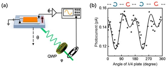 - Yuan, H.; Wang, X.; Lian, B.; Zhang, H.; Fang, X.; Shen, B.; Xu, G.; Xu, Y.; Zhang, S.-C.; Hwang, H.Y.; et al. Generation and electric control of spin–valley-coupled circular photogalvanic current in WSe2. Nat. Nanotechnol. 2014, 9, 851–857. [Google Scholar] [CrossRef] [PubMed]