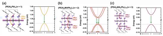 - Yin, J.; Maity, P.; Xu, L.; El-Zohry, A.M.; Li, H.; Bakr, O.M.; Brédas, J.-L.; Mohammed, O.F. Layer-Dependent Rashba Band Splitting in 2D Hybrid Perovskites. Chem. Mater. 2018, 30, 8538–8545. [Google Scholar] [CrossRef]