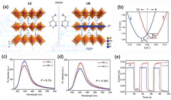 - Zhou, B.; Liang, L.; Ma, J.; Li, J.; Li, W.; Liu, Z.; Li, H.; Chen, R.; Li, D. Thermally Assisted Rashba Splitting and Circular Photogalvanic Effect in Aqueously Synthesized 2D Dion–Jacobson Perovskite Crystals. Nano Lett. 2021, 21, 4584–4591. [Google Scholar] [CrossRef] [PubMed]