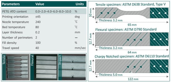 2.2. Preparation of the PETG and PETG/ATO Filaments and 3D Printing of the Specimens