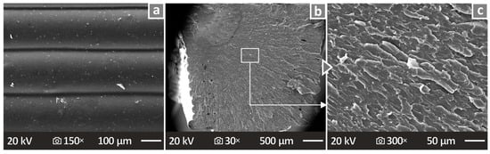 Tensile, flexural, Charpy impact, and microhardness (M-H) tests were performed to investigate the mechanical performance of the specimens. ASTM D638-02a for V-type tensile specimens (3.2 mm thick) was followed for the manufacturing and tensile tests. A tension/flexure test apparatus in tensile mode, Imada MX2 (Imada Inc., Northbrook, IL, USA), with standardized grips, was used for tensile testing. For the flexural 3-point bending testing, ASTM D790-10 (3-point bending test with a 52.0 mm support span) was considered, while the machine utilized was the same as for the tensile test, but in the flexural mode setup, in accordance with the corresponding standard. Impact testing was based on ASTM D6110-04 and conducted using a Terco MT 220 (Terco, Kungens Kurva, Sweden) Charpy impact device. For microhardness testing, the measurements were taken in accordance with ASTM E384-17, using an Innova Test 300 Vickers device from Innovatest Europe BV, Maastricht, The Netherlands, on a fully polished surface of the specimens. A force of 100 gF was applied, and an indentation duration of 10 s was set.