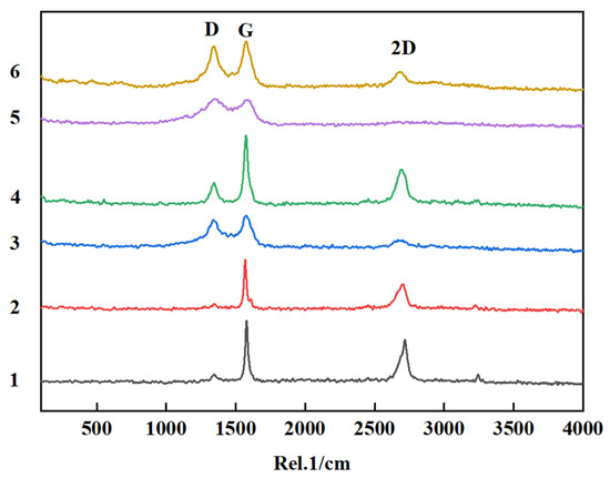 The peak at around 2700 cm−1 is a characteristic feature of graphene, commonly referred to as the 2D peak. This particular peak is often utilized to determine the number of layers present in graphene, and the calculation method involved is denoted as I2D/IG. As the proportion decreases, it indicates that the graphene layer is becoming progressively thicker [35].