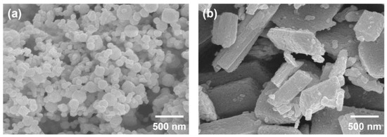 SEM images of (a) 4N and (b) 5N β-Ga2O3 powders.