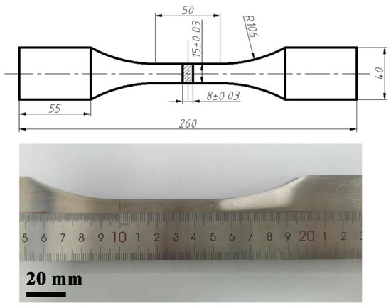 Morphology and size of the S30408 stainless steel fatigue specimens.