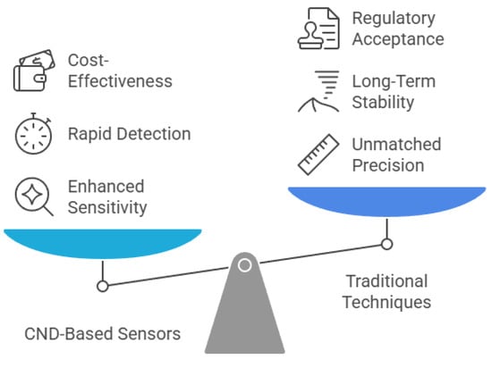 - CNFs: CNFs have a high aspect ratio and provide good mechanical properties, similar to CNTs, making them useful for various sensor applications, particularly in electrochemical devices. However, unlike CNDs, CNFs generally lack significant photoluminescence, which limits their use in optical sensors. CNFs also require energy-intensive synthesis methods, which can be a disadvantage in terms of cost effectiveness and scalability [].