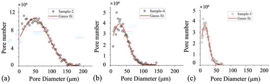 Pore diameter distribution in the reservoir rocks with different permeabilities: (a) Sample 2; (b) Sample 4; (c) Sample 5.