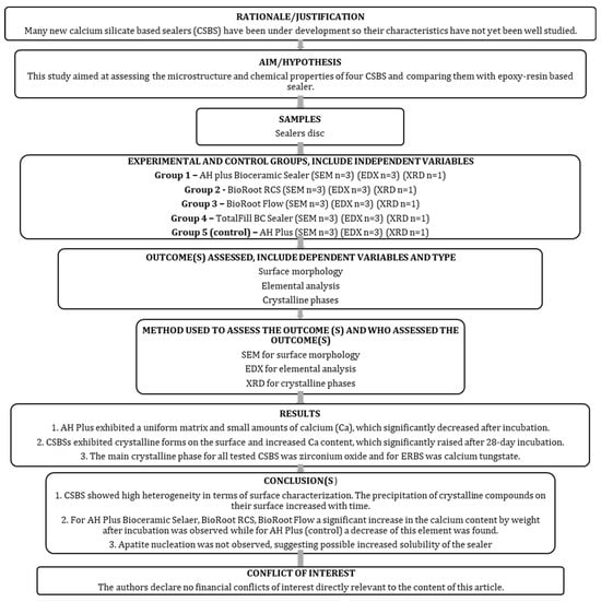 - Nagendrababu, V.; Murray, P.E.; Ordinola-Zapata, R.; Peters, O.A.; Rôças, I.N.; Siqueira, J.F., Jr.; Priya, E.; Jayaraman, J.; Pulikkotil, S.J.; Camilleri, J.; et al. PRILE 2021 Guidelines for Reporting Laboratory Studies in Endodontology: A Consensus-Based Development. Int. Endod. J. 2021, 54, 1482–1490. [Google Scholar] [CrossRef]