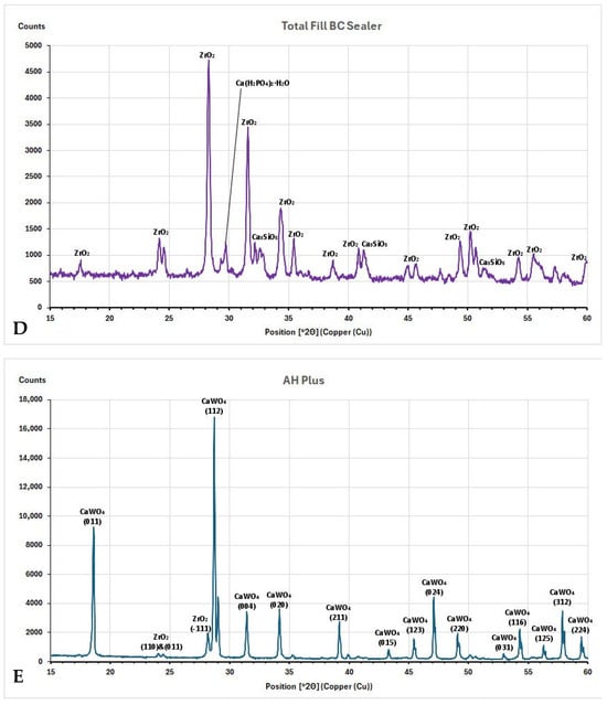 - Abu-Zeid, S.T.; Saif, R.E.; Mostafa, H.A.; Edrees, H.Y. Characterization and Crystallinity of Two Bioactive Sealers: Qualitative and Quantitative Analysis. Appl. Sci. 2024, 14, 1285. [Google Scholar] [CrossRef]