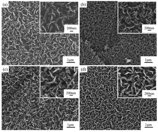 The effectiveness of the pretreatment process depends on the etching temperature, as the etching process only takes effect when the temperature exceeds 450 °C. At lower temperatures, the reduction rate of the catalyst is relatively slow. Catalyst agglomeration mainly occurs in the temperature range near 500 °C. Therefore, only under high-temperature conditions can hydrogen plasma etching effectively control the structure and density of carbon nanosheets. In contrast, etching time has a minimal impact on the deposition results of the carbon nanosheets compared to the etching temperature.