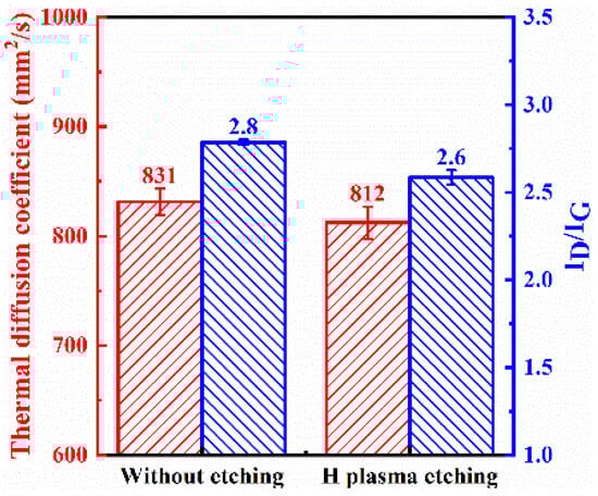 Thermal diffusion coefficient and ID/IG ratio obtained from Raman spectroscopy of graphite film pretreated with or without hydrogen plasma etching.