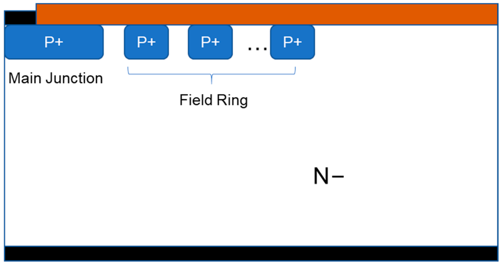 - Dai, T.; Zhang, L.; Vavasour, O.; Renz, A.B.; Cao, Q.; Shah, V.A.; Mawby, P.A.; Antoniou, M.; Gammon, P.M. A Compact and Cost-efficient Edge Termination Design for High Voltage 4H-SiC Devices. In Proceedings of the IEEE International Symposium on Power Semiconductor Devices and ICs, Nagoya, Japan, 30 May–3 June 2021; pp. 251–254. [Google Scholar]