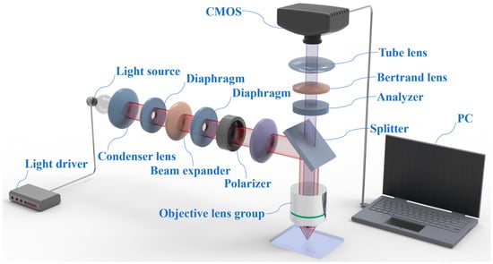 Figure 1 illustrates the schematic diagram of the proposed damage precursor inspection system setup named microscopic polarization damage precursor inspection system (MPIS) for short. The system consists of two main parts: the microscopic polarization imaging subsystem, and the automatic deep learning processing subsystem. The microscopic polarization imaging subsystem is based on the objective lens group, the light source, the Bertrand lens, the tube lens, the condenser lens, the diaphragm, the beam expander, the polarizer, the analyzer, and the high-resolution CMOS. The light source is a 12 V 30 W halogen lamp, and its brightness can be adjusted to adapt to different materials. Both the polarizer and analyzer can achieve 360° free rotation. The objective lens group is designed with a dual telecentric achromatic structure, with a working distance of approximately 20 mm, a numerical aperture of 0.25, and a magnification of 10 times. The pixel size of CMOS is 2.4 microns, and the chip size is 1 inch. The automatic deep learning processing subsystem mainly focuses on damage precursor data augmentation, identification, and classification.
