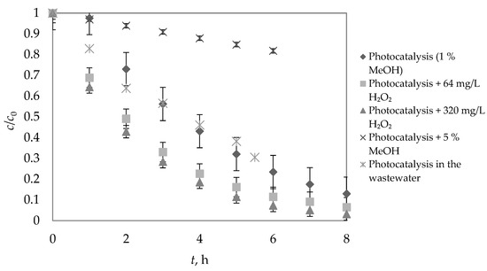 | Photocatalysis + 5% MeOH | 20.75 | 0.0334 (±0.011) | 0.9992 |